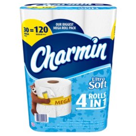 Charmin ultra gentle mega roll is the only toilet paper with a touch of soothing lotion on every sheet.